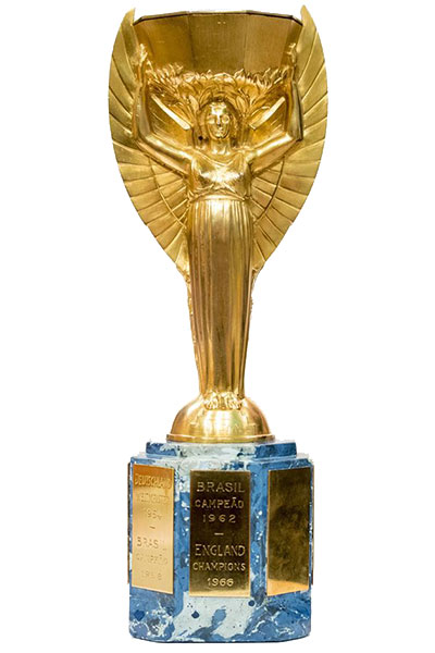 اولین جام، که در ابتدا ویکتوری نام داشت، اما بعداً به افتخار ژول ریمه، رئیس فرانسوی فیفا تغییر نام داد، از نقره استرلینگ با روکش طلا و لاجورد ساخته شده بود و نایک، الهه یونانی پیروزی را به تصویر می کشید. برزیل در سال 1970 جام قهرمانی را به طور کامل به دست آورد و باعث شد که جایگزینی برای آن راه اندازی شود.